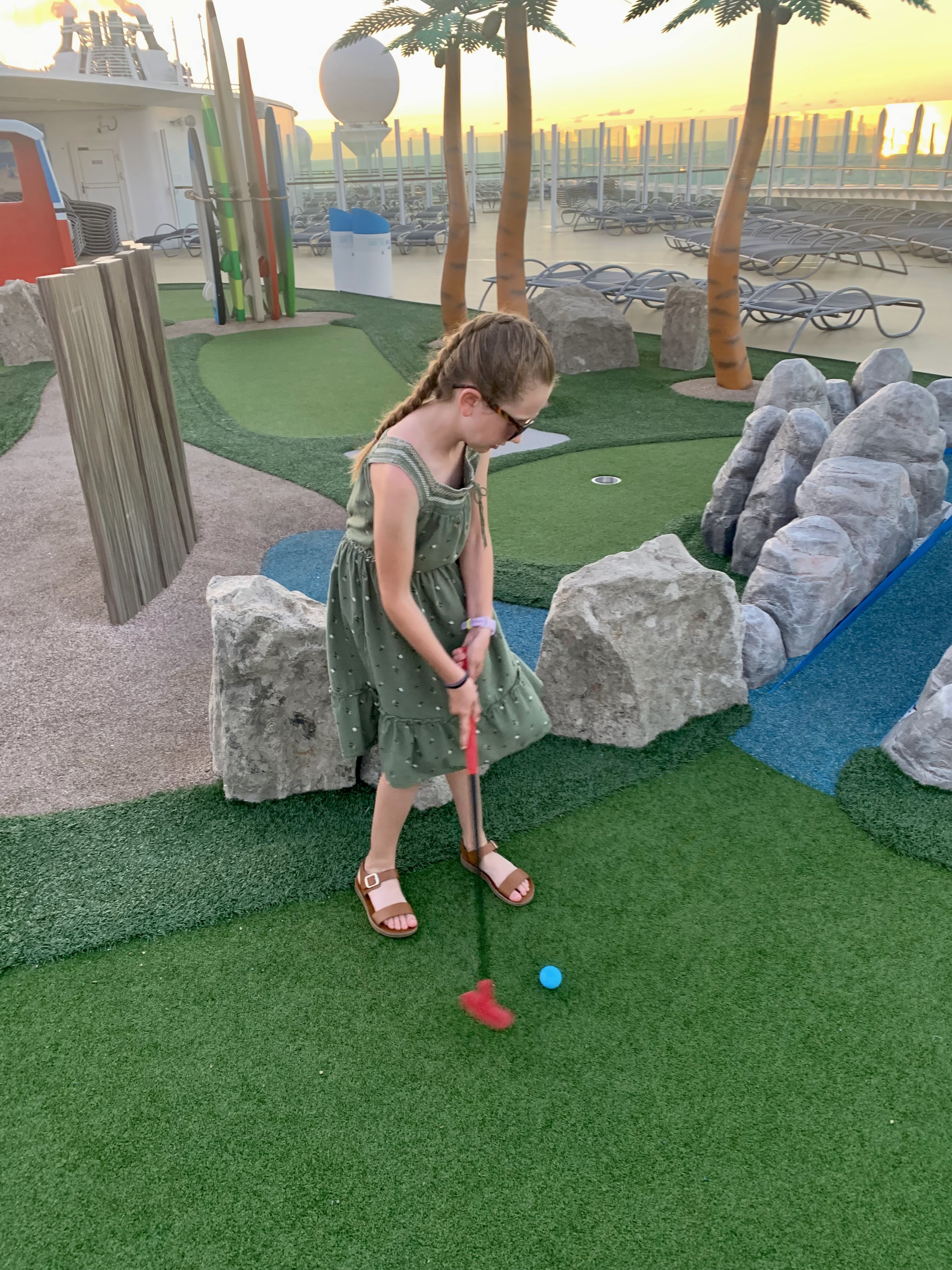 We had the opportunity to go on a cruise this summer. We had booked the cruise back in 2021 when cruises were shut down so we got a decent deal. This was the first cruise for the kids and I and Craig hadn't been on one for almost 20 years, so to say we were excited would be the understatement of the year. Craig's parents booked the cruise too. Right after school ended we flew out to Houston on Saturday June 4th. Brian picked us up from the airport and let us crash at their place for the night. Sunday morning we took an Uber to the port in Galveston. The port was crazy busy but Royal Caribbean was very well organized and we made it through fairly quickly. Since we couldn't get into our room yet we headed straight for the buffet. After filling our bellies we headed out to the pools and swam until Stan and Diane got onto the ship. The first 2 days were spent on the ship exploring, eating, swimming, playing miniature golf, drinking pina colada's and just spending time together. We also went rock climbing or tried to. You had to be at least 6 years old to rock climb so we prepped McKay to say he was six. We wait in line we make it past the first set of people to get our shoes and harness and then wait in line again. Brooklyn and I start to climb and then the worker is getting McKay hooked up and asks McKay how old he is and he automatically answers that he is 5. He was so upset, but there was no saving it at that point.