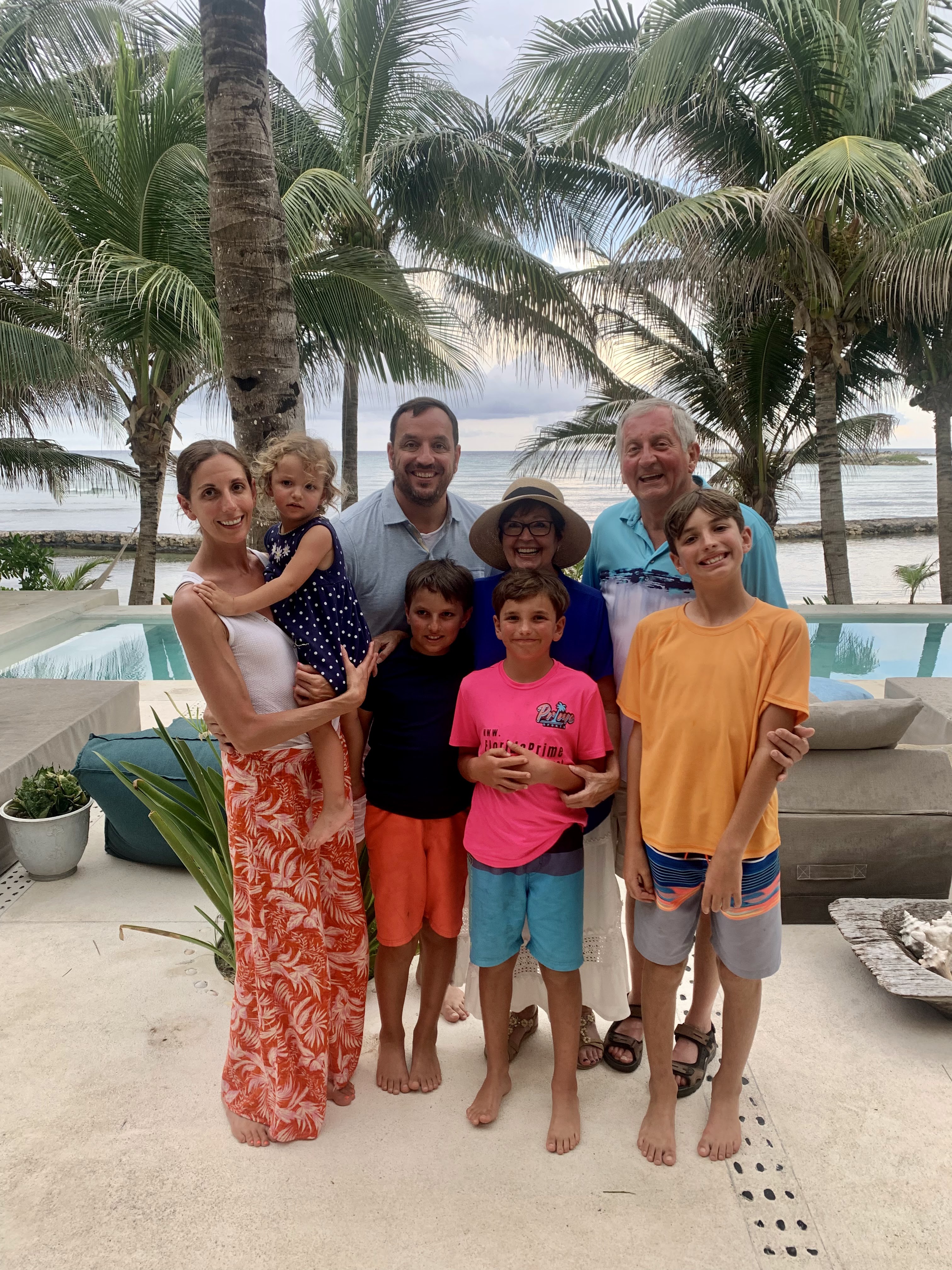 Thursday was the day we had designated to celebrate their 50th wedding anniversary. We had booked a private catamaran for the family to go out snorkeling. Unfortunately Graham was not feeling well so he and Brooke stayed back and then Lisa thought it might be tough with little Penny Rose so her and Stephen stayed back as well. But everyone else walked or rode in a golf cart to the marina. We got on the boat and rode out for a while until we got out to some beautiful blue water and a reef. Everyone except Diane got in to snorkel. The kids all did great! We then ate lunch made by the chef on the boat and played out in the water for a while. Brooklyn and Audrey rode the paddle board like a surf board, we floated on innertubes and floaties, we even got to try out a SeaBob. We played until we were all worn out and Diane had gotten too hot (not being able to get in the water made it very difficult for her to stay cool). On our way back to the marina they served up a delicious cake for their anniversary. We got back in time to the villa for everyone to swim in the pool for a while before dinner. Before we ate dinner Brooke showed us a wonderful slide show she had put together for them of pictures throughout their 50 years together. We also gave them letters from everyone expressing our love and gratitude for them. After dinner we had yet another cake celebrating them. We had another amazing day, even if I got the most sunburned I had in 20 years. Everyone started packing up because it was time to head home the next morning.